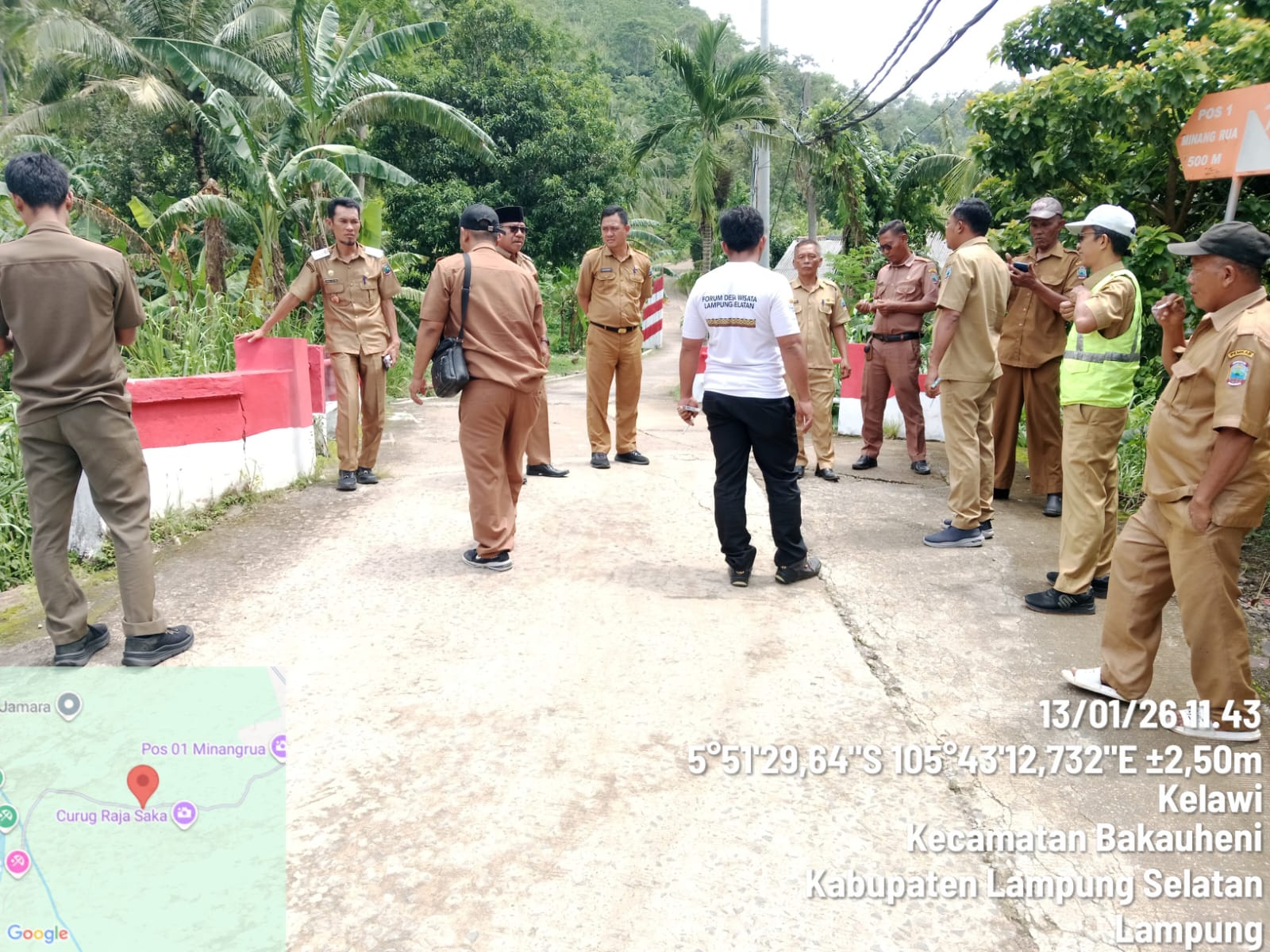 Kunjungan tersebut turut dihadiri oleh tim Kecamatan Bakauheni, Kepala Desa Kelawi, serta pengurus Wisata Pantai Minang Rua. Peninjauan dilakukan sebagai bagian dari kegiatan survei lokasi yang direncanakan untuk mendukung pelaksanaan normalisasi aliran sungai di kawasan tersebut.