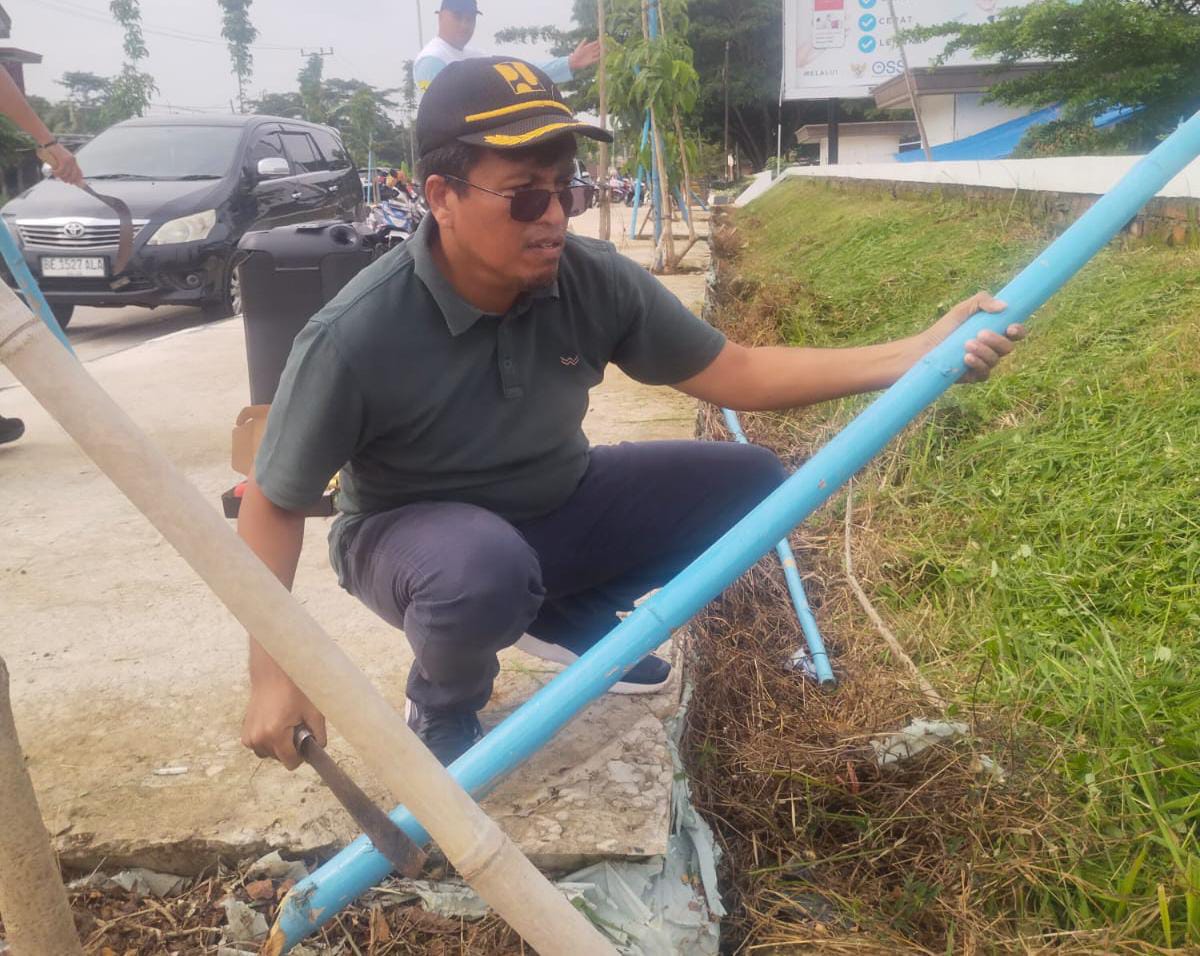 Dinas PUPR Kabupaten Lampung Selatan melaksanakan kegiatan gotong royong kebersihan jalan dalam rangka mewujudkan lingkungan yang Asri, Bersih, Rapi, dan Indah (ABRI).