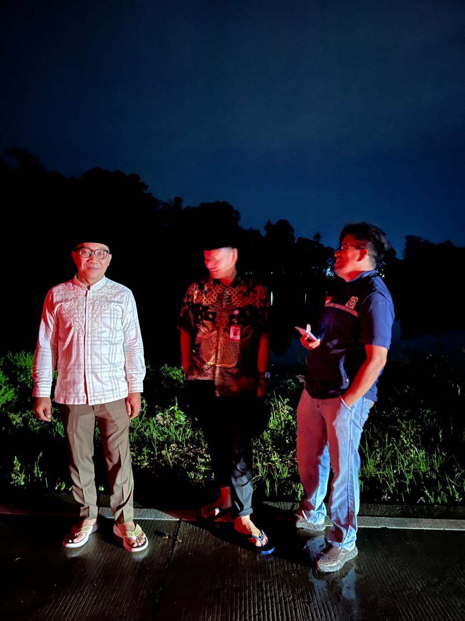 Bupati Lampung Selatan Radityo Egi Pratama, S.T., M.B.A. bersama Wakil Bupati Lampung Selatan M. Syaiful Anwar, S.T., M.Pd. meninjau sejumlah titik lokasi banjir di wilayah Kecamatan Jati Agung pada Jumat malam, 6 Maret 2026.