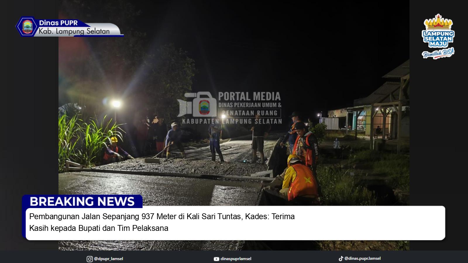 Pekerjaan rabat beton fc 20 sepanjang 937 meter di Ruas Jalan Kalisari–Muji Mulyo, Kecamatan Natar, Kabupaten Lampung Selatan, yang dikerjakan oleh....